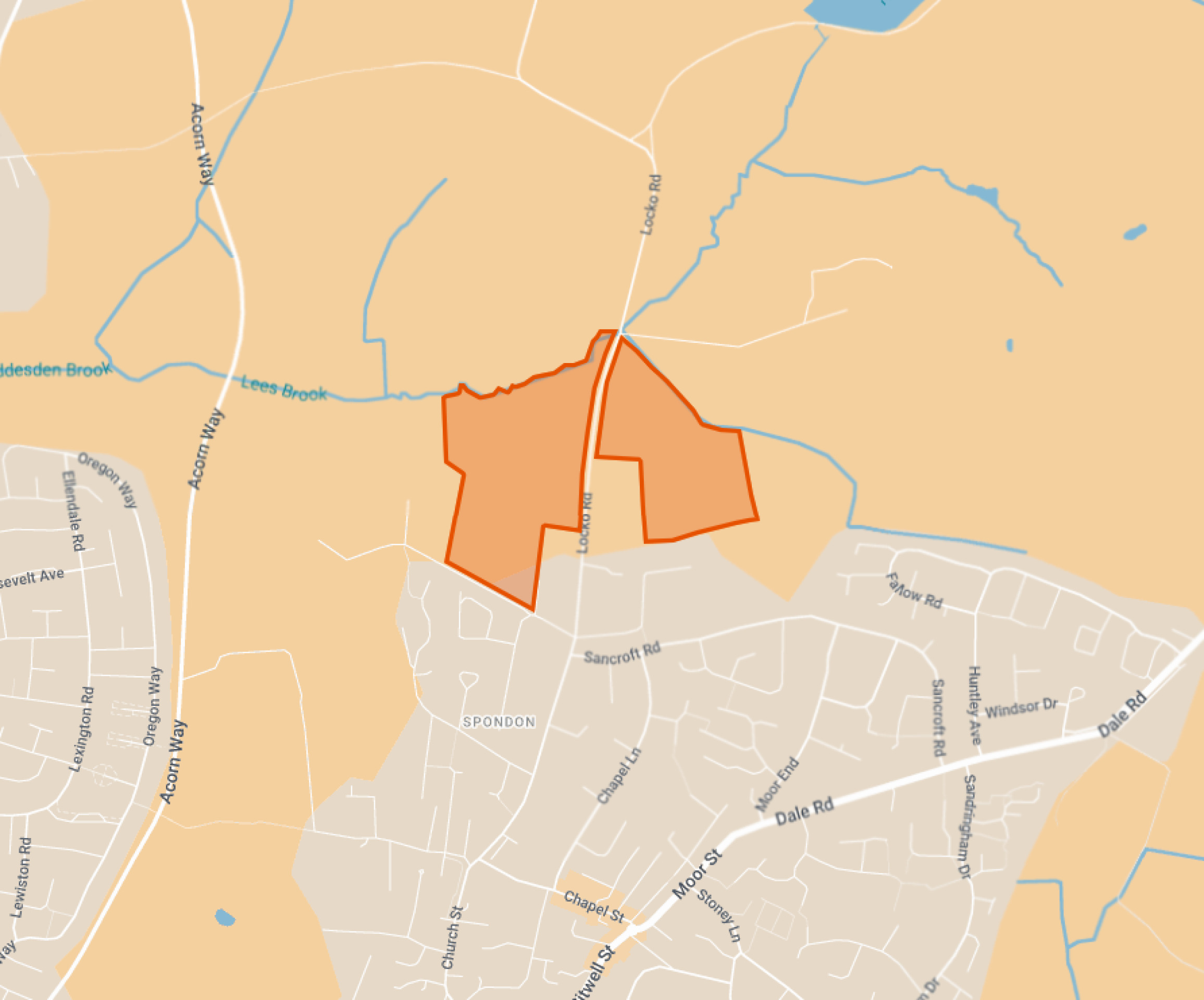 The northern boundary of the site is formed by a watercourse, consisting of Lees Brook on the west side of Locko Road and an unnamed stream on the eastern side. This provides a clear and logical boundary of the site separating it from countryside to the north.